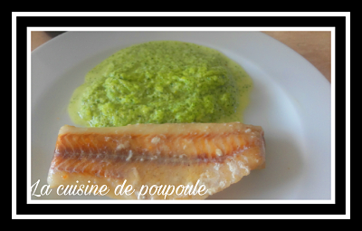 10- Servez dans chaque assiette de la purée de brocolis et un filet de cabillaud.
