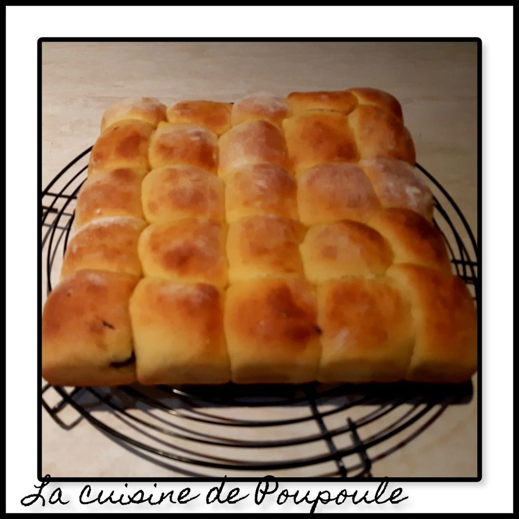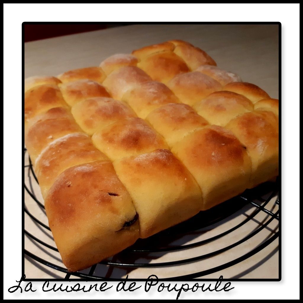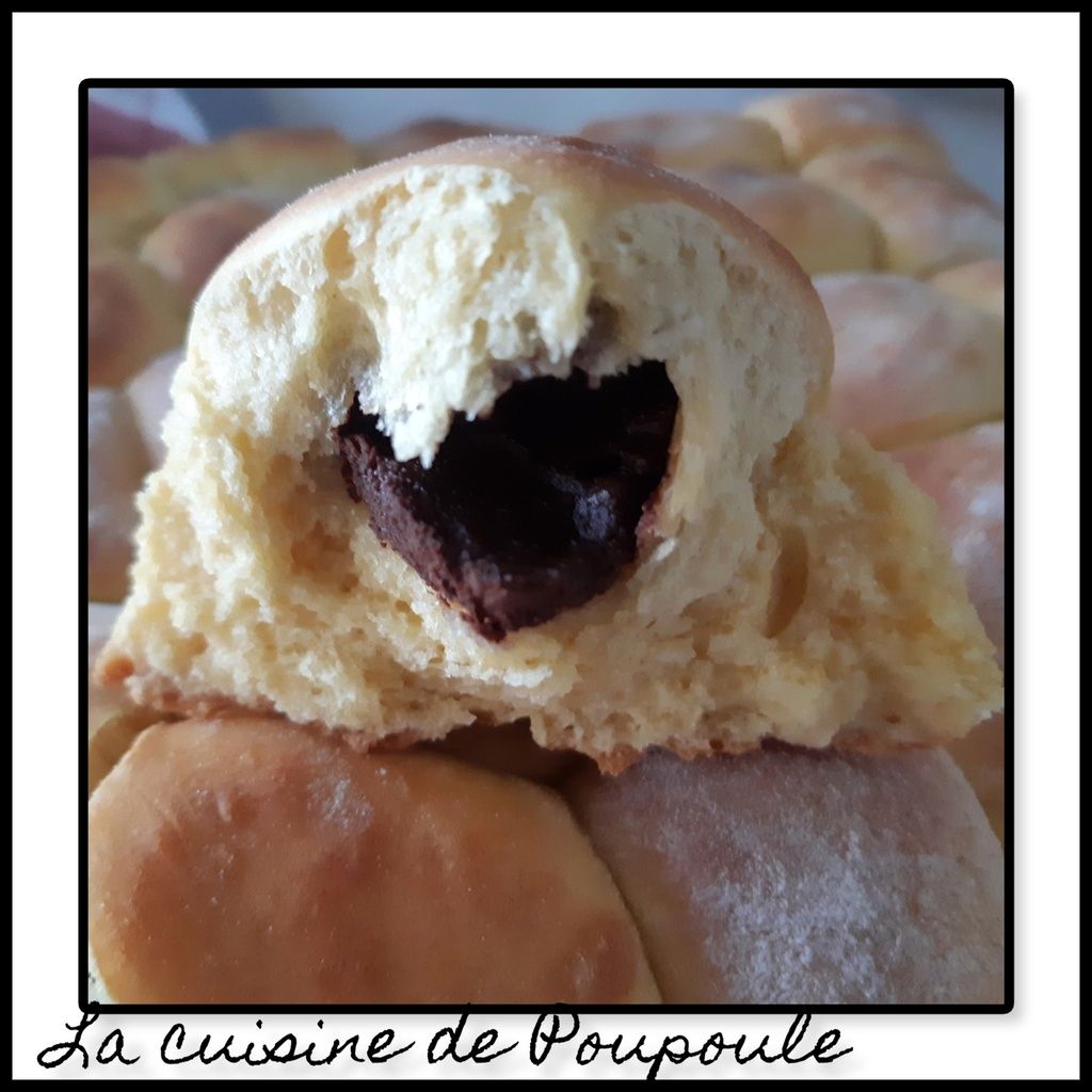 4- avec les mains bien farinées, façonnez des boules de 40 grammes, glissez un carreau de chocolat à l’intérieur, refermé et souder bien les bords pour former une boule de pâte.