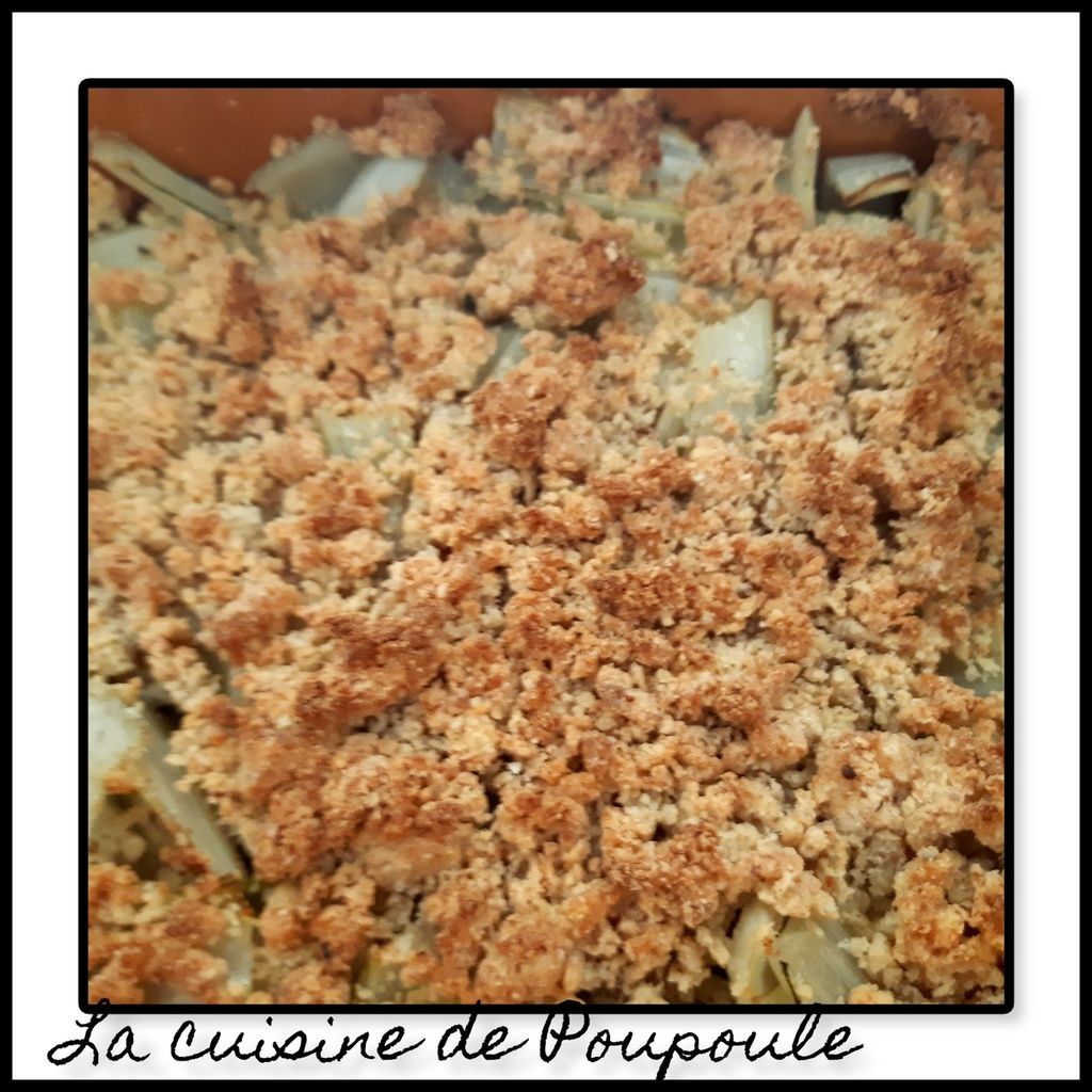 10- ajoutez la pâte à crumble sur les blettes et enfournez pendant 30 minutes environ.